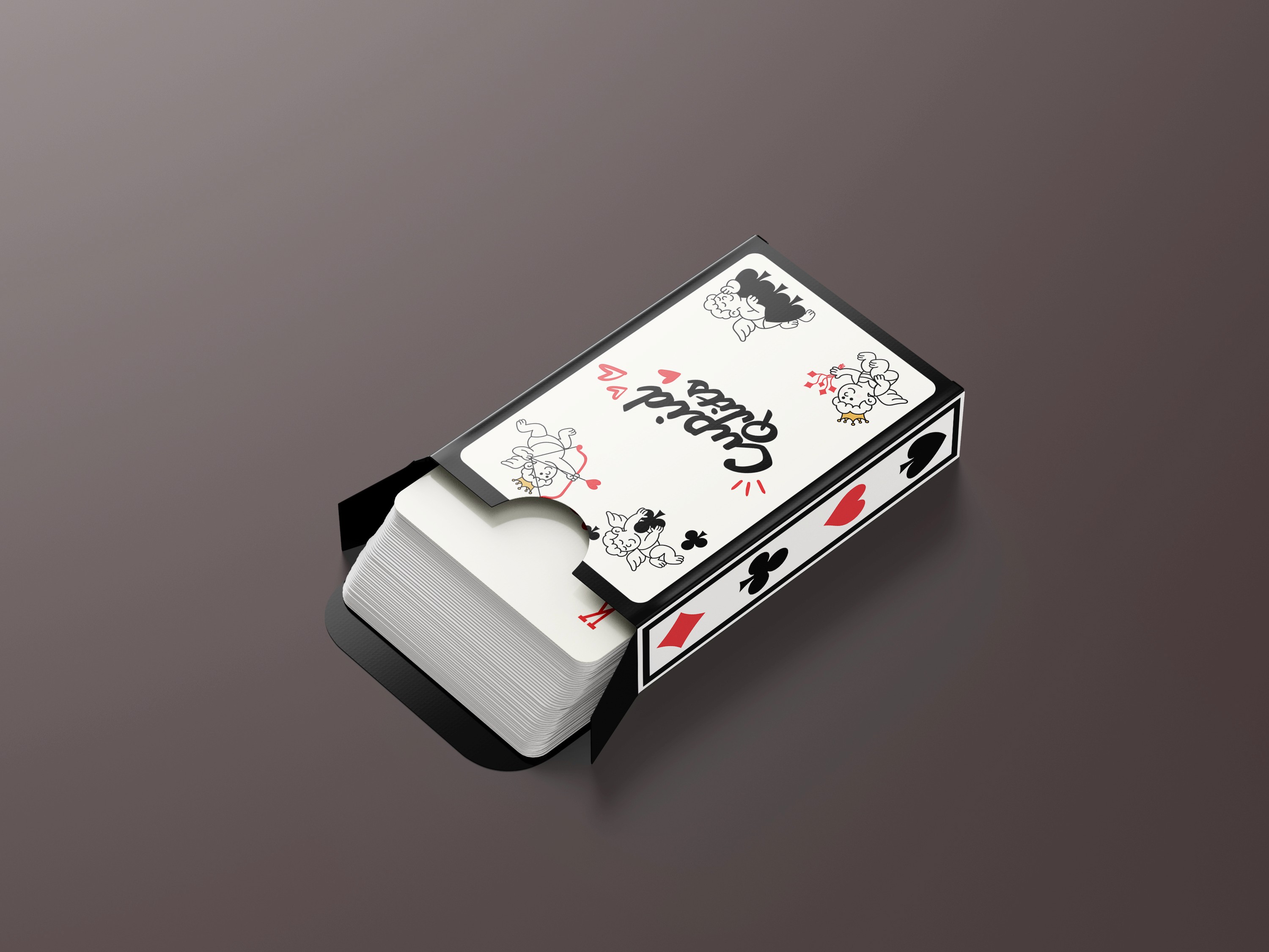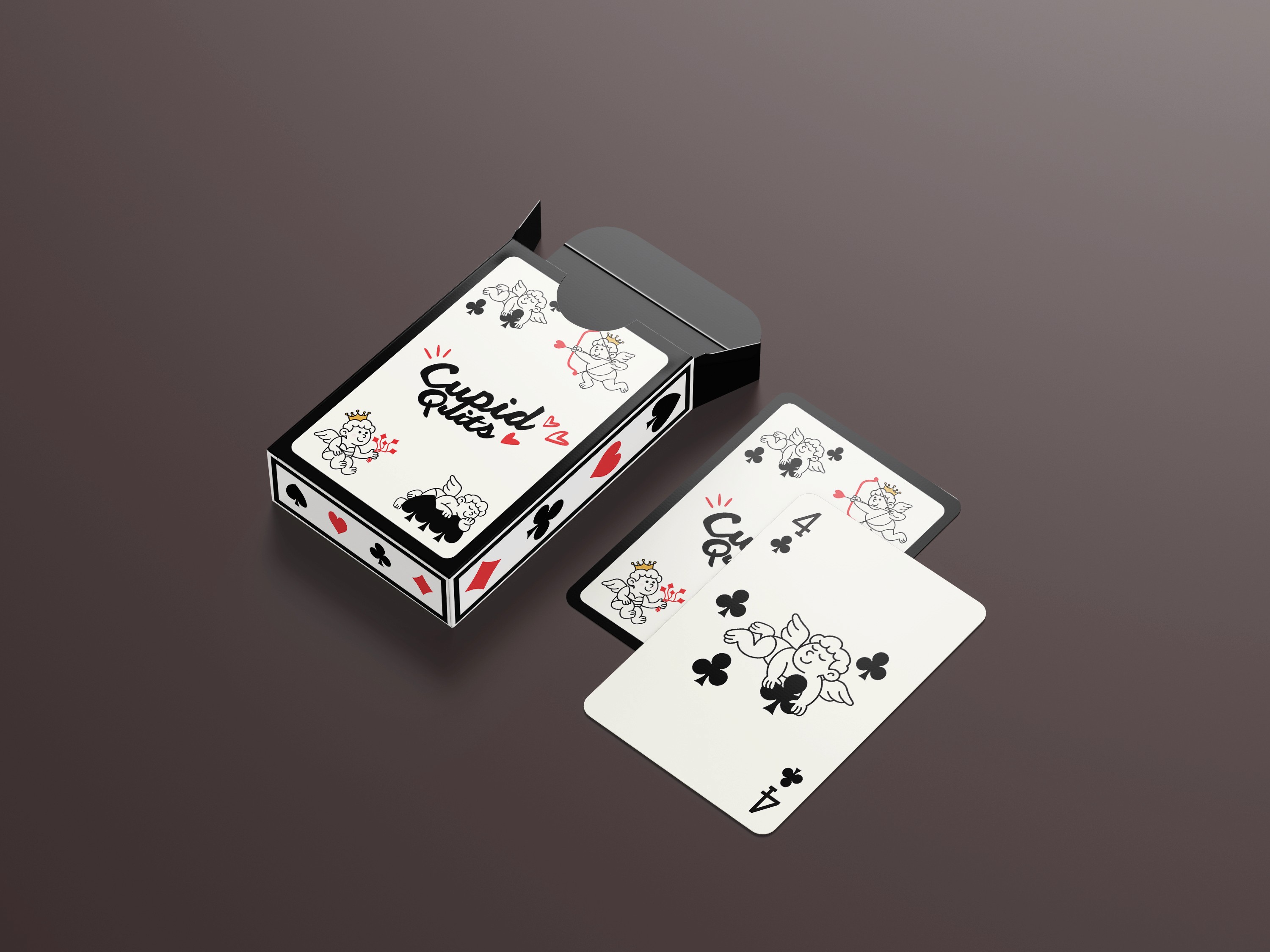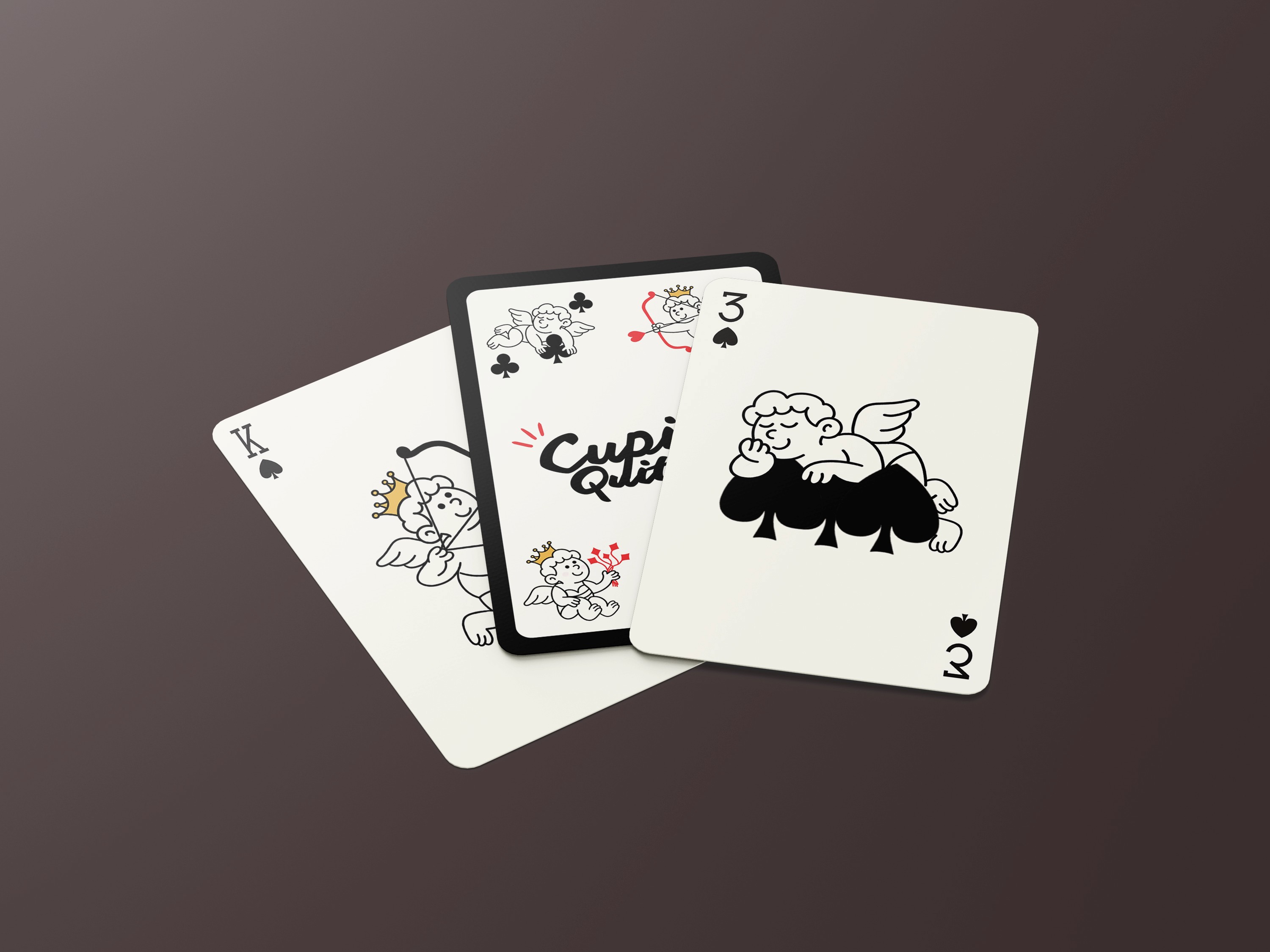 Cupid Quits is a minimilistic playful, hand illustrated deck of playing cards that shows the classic angel of love as an overworked romantic who’s simply had enough. No more arrows or matchmaking, these cupids are busy lounging, slacking off and messing around with the elements that define a classic card deck.